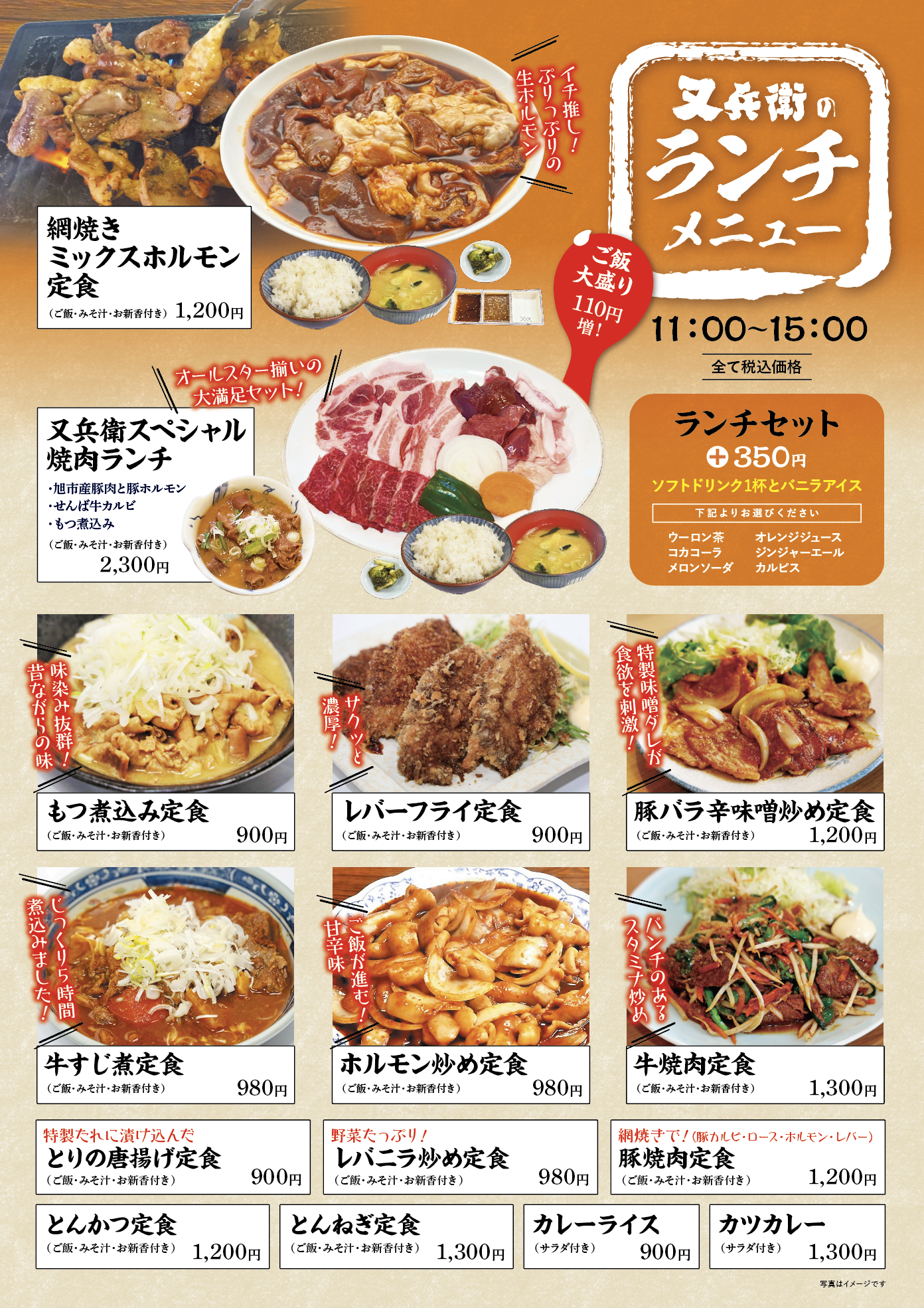 平日も!土日も!毎日提供(月曜を除く)11:00~